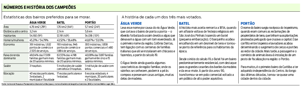 Em relação ao Portão, o professor acredita que o levantamento apenas reforça a autonomia do bairro. “Trata-se de bairros muito próximos, sendo difícil estabelecer a fronteira entre eles”, afirma. “Até por isso, os curitibanos têm essa região como a melhor da cidade.”