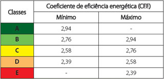 (2) Limites definidos pelo inmetro em condicionadores de ar do tipo split, para cada nível de eficiência