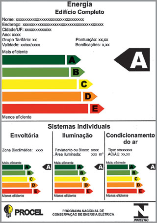 A Etiqueta de Eficiência Energética em edificações faz parte do Programa Brasileiro de Etiquetagem (PBE) e foi desenvolvida em parceria entre a estatal Eletrobrás e o Instituto Nacional de Metrologia, Normalização e Qualidade Industrial (Inmetro). O objetivo é incentivar a iluminação e a ventilação naturais, reduzindo o consumo de energia elétrica. Para que os edifícios recebam a classificação, os projetos devem ser analisados e contemplados com etiquetas de A a E, de acordo com o consumo de energia.