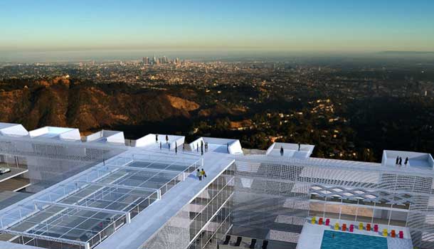 Quartos de hotel seriam localizados dentro do letreiro e áreas públicas atrás