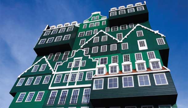 Recentemente foi inaugurado o hotel Inntel, na cidade de Zaandam, Holanda. O prédio de 12 andares projetado pelo escritório alemão WAM Architecten é formado por cerca de 70 pequenas casas “empilhadas”, que foram inspiradas nas tipologias e cores tradicionais da região. A obra custou 15 milhões de euros.