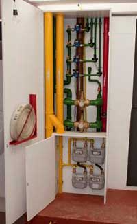 Os medidores de gás se localizam na região inferior da unidade, permitindo a visualização para leitura realizada pelo funcionário da Comgás para emissão da conta individualizada. A área de medidores de água fica na parte superior da UMI, pois a leitura é feita à distância pela Sabesp.