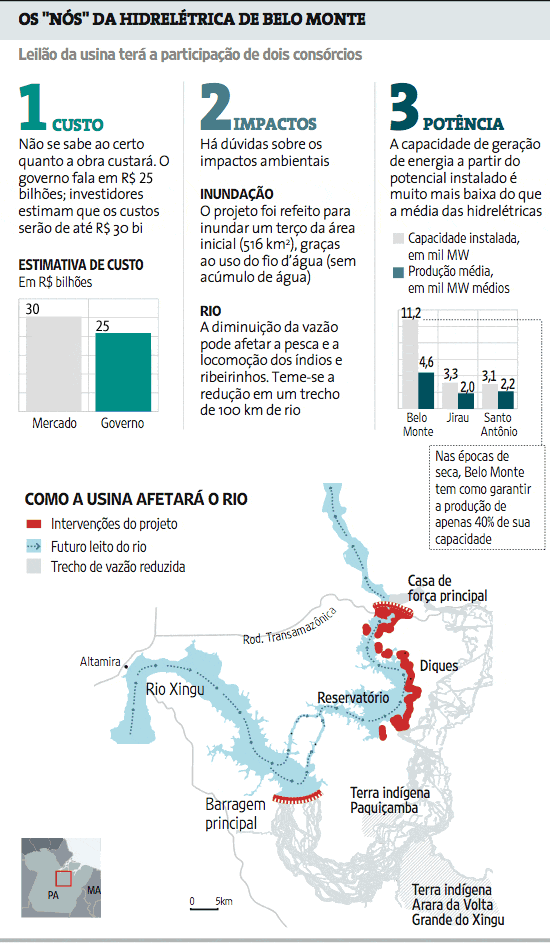 O processo de licenciamento foi conturbado. Os empreendedores negociavam com a agência ambiental e o governo a flexibilização dos prazos de cumprimento de algumas das 40 condicionantes impostas pelo Ibama na Licença Prévia, concedida antes do leilão da usina.