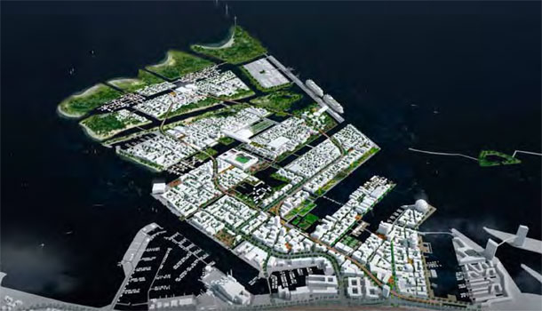 A nova área foi desenvolvida com base em seis temas principais: ilhotas e canais, identidade e história, cidade de cinco minutos, azul e verde da cidade, cidade CO2 amigável e grade inteligente.