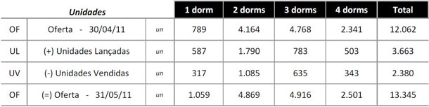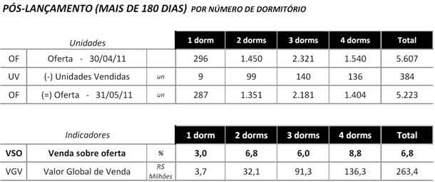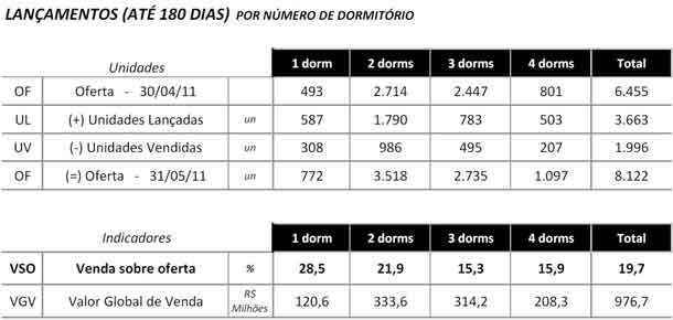 No mês de maio, no entanto, houve alta de 2,6%, com a comercialização de 2.380 unidades contra os 2.319 imóveis vendidos em abril. Cerca de 83,9% das vendas foram concretizadas na fase de lançamento do empreendimento.