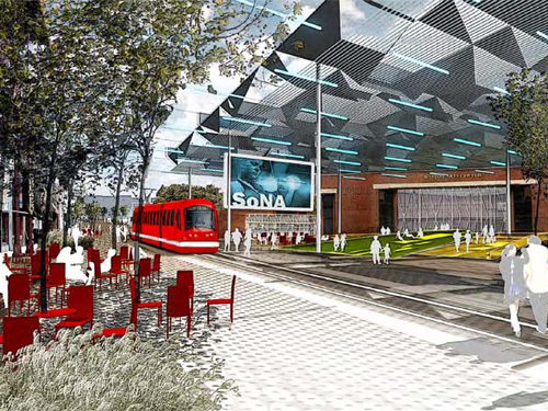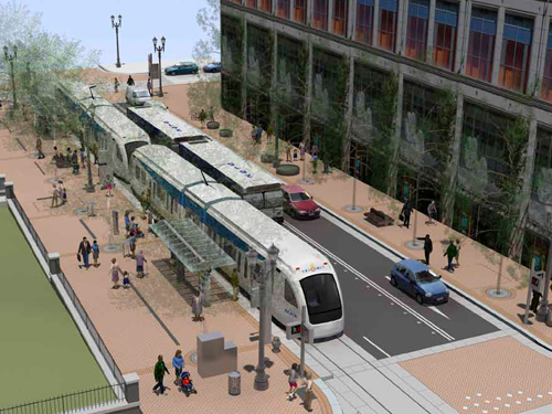 “Fayetteville 2030: Transit City Scenario”, da University of Arkansas Community Design Center, em Fayetteville, Arkansas (EUA)