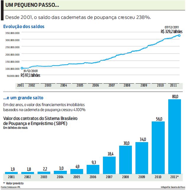 Em 2011, a captação líquida das cadernetas ficou em R$ 14,2 bilhões. Enquanto isso, as emissões de novos financiamentos imobiliários chegaram perto de R$ 80 bilhões no ano passado – os números definitivos ainda não foram divulgados. A diferença entre os dois números deixa claro que há um descompasso entre os empréstimos do Sistema Financeiro da Habitação (SFH) e sua principal fonte de recursos – uma situação que coloca em risco a oferta de imóveis para a classe média brasileira. Com base em dados como esse, observadores estimam em dois anos a vida útil da caderneta como origem de recursos para empréstimo nesse segmento. “O saldo dos financiamentos cresce, em média, 40% ao ano. A poupança cresce 10% ao ano. Em algum momento, lá por 2013, as linhas vão se cruzar”, diz Fernando Baumeier, superintendente de negócios imobiliários do banco Santander.
