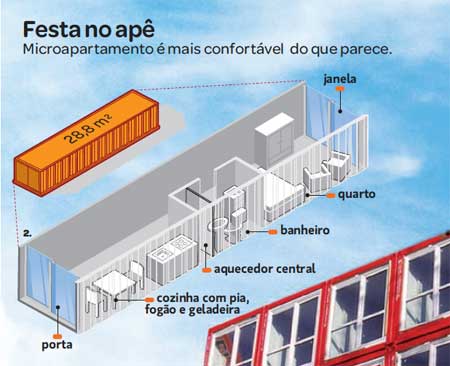 Os contêineres são pequenos, e o prédio não tem elevador (é preciso subir de escada). Mas, como o aluguel custa 320 euros por mês, barato para os padrões de Amsterdã, ninguém reclama. “No começo fiquei apreensivo, mas hoje acho bem eficiente”, diz o estudante alemão Torsten Müller, que vive lá há 6 meses. O sucesso foi tão grande que a empresa responsável pelo projeto já construiu outra vila num subúrbio de Amsterdã – e também está erguendo um hotel na cidade de Yenagoa, na Nigéria, para turistas que quiserem ter a experiência de dormir num contêiner. Mas com acomodações de luxo – lata por fora, quatro-estrelas por dentro.