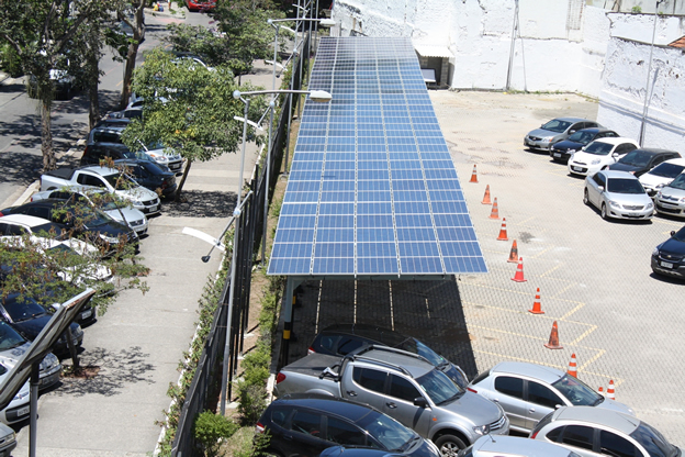 Um estacionamento solar projetado dentro da sede do grupo Enel, em Niterói (RJ), tornou-se o maior do país ao alcançar a marca de 22 MWh de geração de energia solar em apenas quatro meses de funcionamento. O volume é suficiente para abastecer simultaneamente cerca de 30 residências com consumo médio de 155 kWh/ mês.