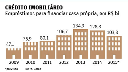 A previsão inicial da Caixa era de, pelo menos, repetir neste ano o desempenho do crédito imobiliário em 2014, de R$ 128,8 bilhões (R$ 70,4 bilhões com o dinheiro da poupança e R$ 49,4 bilhões com FGTS e subsídios).