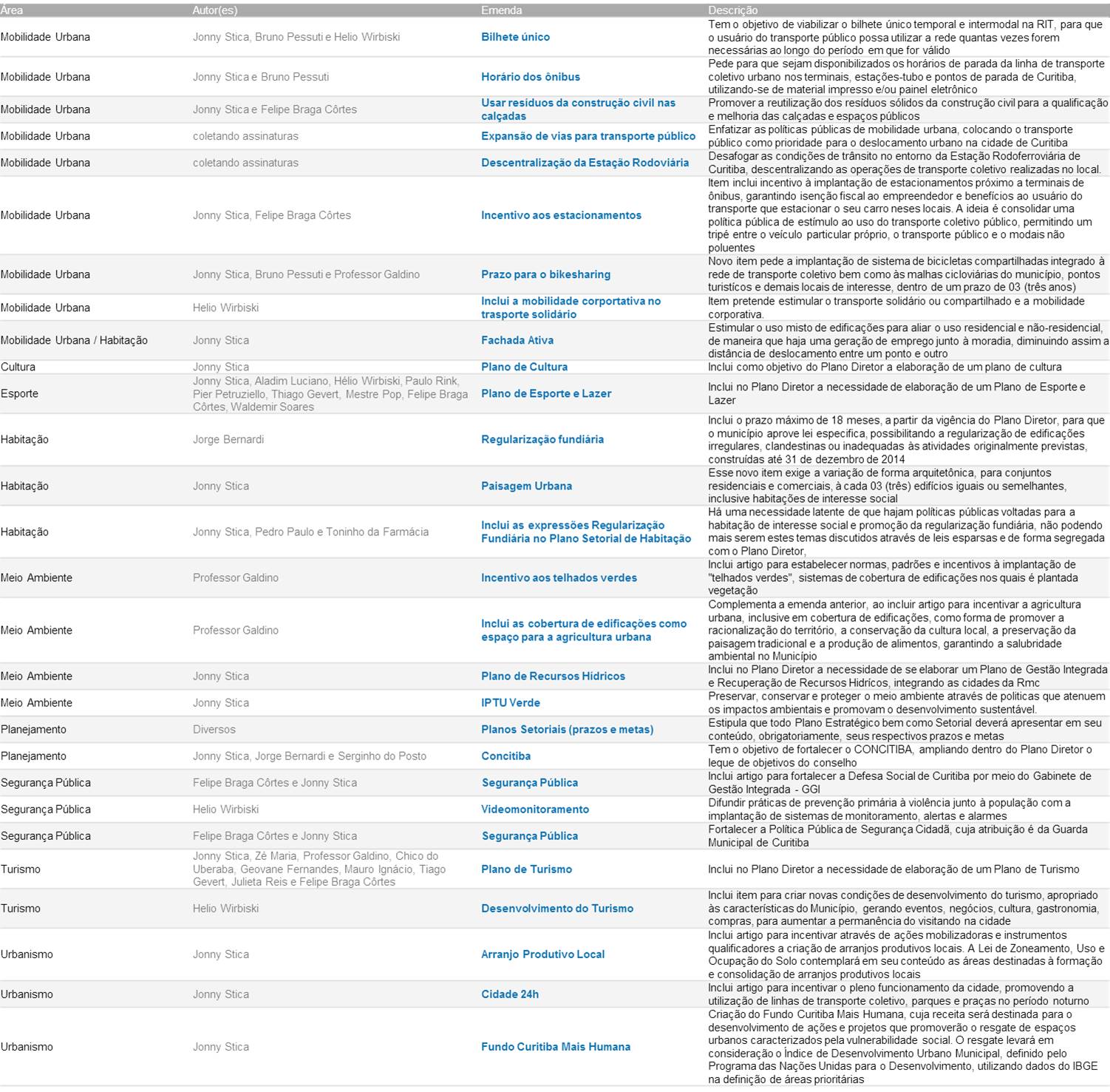 Outra emenda deve diminuir a quantidade de carros no centro, mas não sem causar polêmica. Os vereadores propõem a descentralização da Rodoferroviária de Curitiba – algo apontado como positivo por especialistas em mobilidade urbana e tendência nas grandes cidades. Mas, sob o pretexto da realização da Copa do Mundo, a cidade acabou de investir mais de R$ 47 milhões em uma reforma no local e em seus acessos.